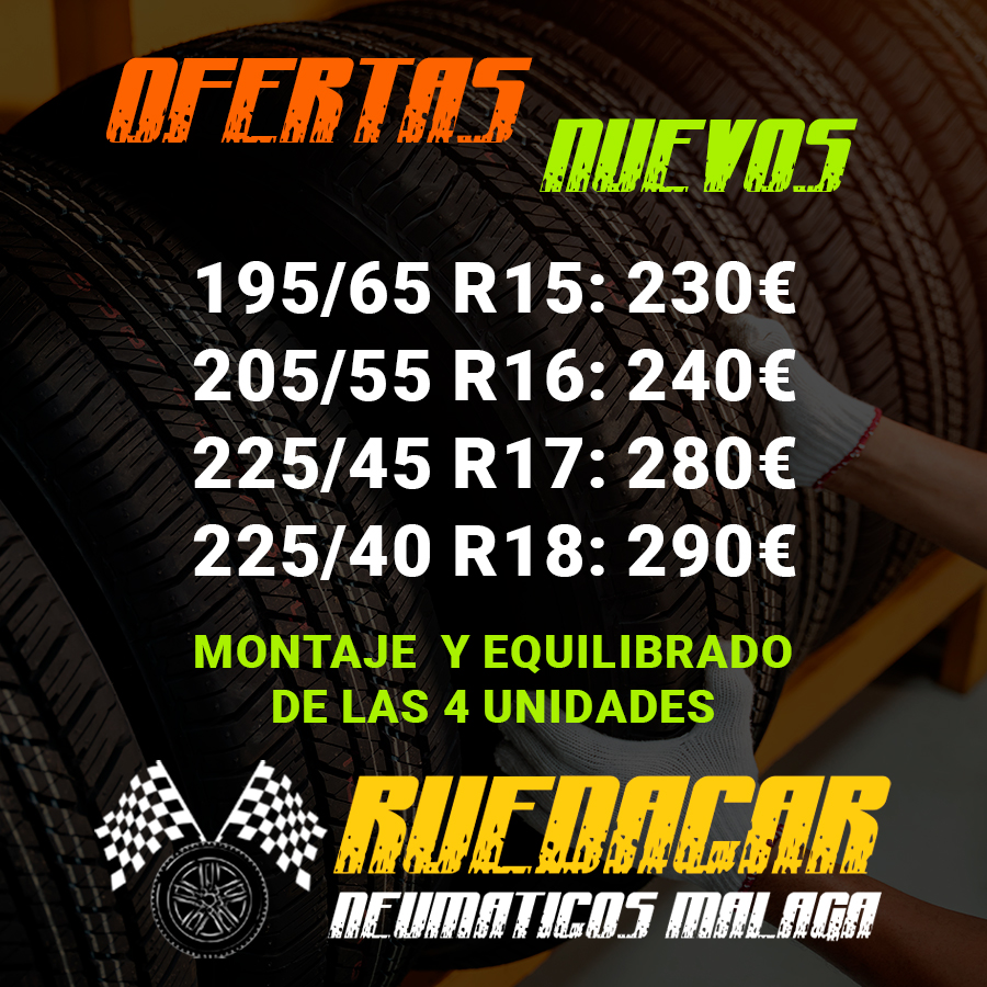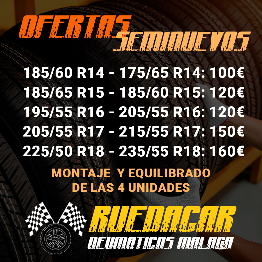 Si resides en Málaga y buscas cambiar tus neumáticos viejos por unos nuevos o seminuevos de primera marca, no dudes en visitarnos. Descubre las increíbles ofertas que tenemos para ti y aprovecha los precios más competitivos en neumáticos de alta calidad, con la garantía y seguridad que solo RuedaCar Málaga puede ofrecer.